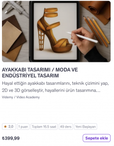 Kursu tamamlayanlar Uluslarası eğitim platformu UDEMY / Ayakkabı tasarımı Sertifikası alırlar.
